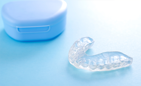 治療法の1つとして、マウスピースの作製(スプリント療法)が挙げられます。食いしばりや歯ぎしりによる歯の負担を軽減するため、睡眠中にマウスピースを装着することを推奨します。さらに、生活習慣の改善も重要です。日常生活で顎関節に負担がかかる行動を避け、頬杖やうつぶせ寝などを控えることをおすすめします。また、必要に応じて詰め物・被せ物の調整も検討します。