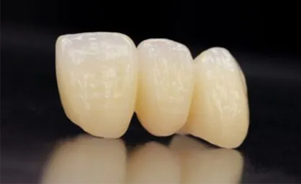 フルジルコニアは、全てジルコニアから作られた詰め物・被せ物です。金属と同等の強度を持つため、奥歯などの負荷がかかる箇所に適しています。