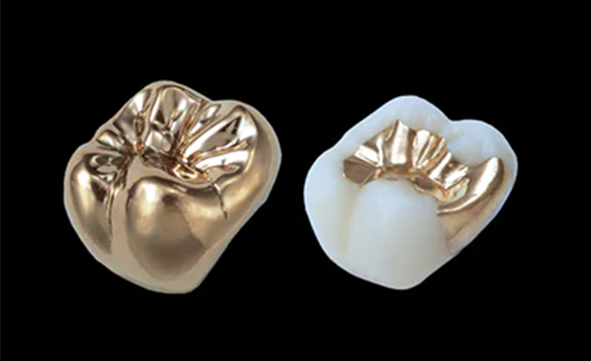 ゴールドは金属製であるものの、金属の溶け出しによる歯茎の変色や金属アレルギーのリスクが低いため、耐久性を重視する奥歯などに使用されます。